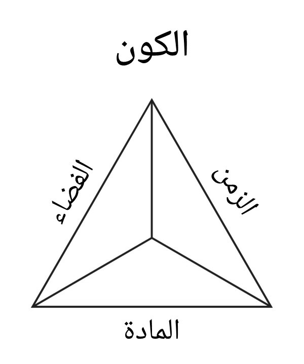 لكن عندما نتأمل فى الكون نرى مثالًا آخر على ثلاثة في واحد. للكون ثلاثة جوانب - الفضاء، الزمن، والمادة. بدون أي عنصر من هؤلاء الثلاثة، لن يكون هناك الكون.