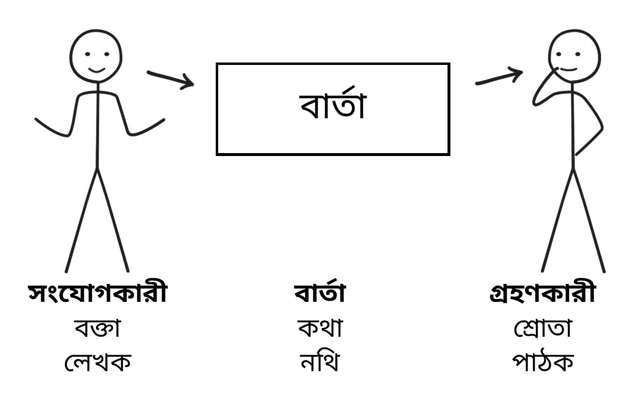 সংযোগ স্থাপনের জন্য তিনটি জিনিস প্রয়োজন: সংযোগকারী, গ্রহণকারী, এবং বার্তা। যে ব্যক্তি সংযোগ স্থাপন করছে সে একটি বার্তা দেয় যা দ্বিতীয় ব্যক্তি দ্বারা গৃহিত হয়।