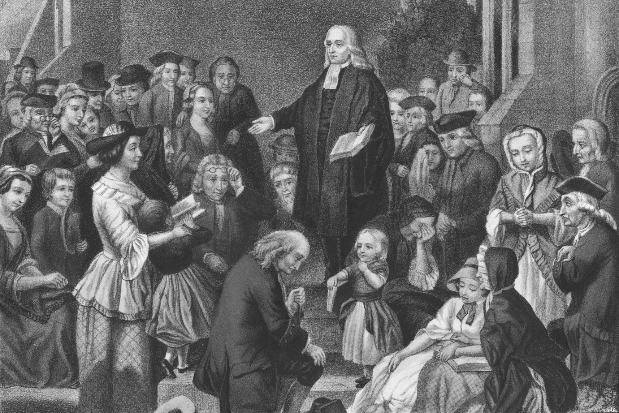 [1]Илюстраця: “John Wesley preaching on his father’s grave”, by Currier & Ives, заимствано от the Library of Congress Prints and Photographs Division, https://www.loc.gov/pictures/item/2002707689/, “няма известни ограничения”