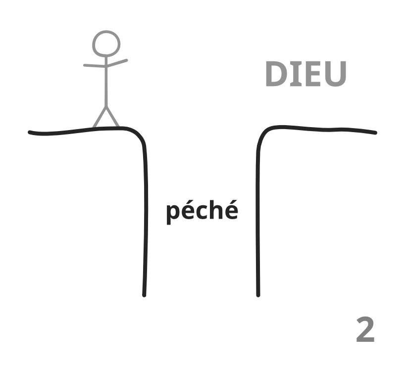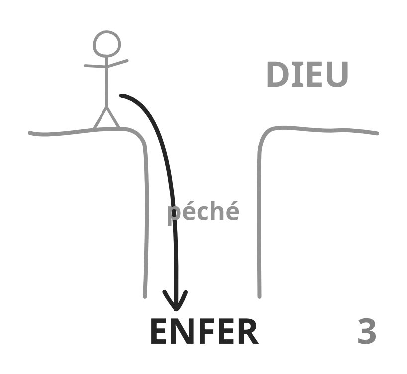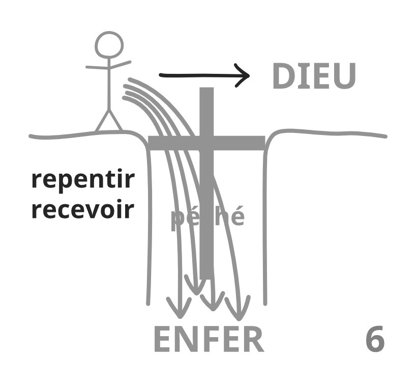 « Où pensez-vous que vous êtes sur ce diagramme? Y a-t-il eu un moment spécial dans votre vie lorsque vous vous êtes repenti de vos péchés, reçu le pardon de Dieu et commencé à vivre pour Dieu; Ou êtes-vous toujours séparé de Dieu par votre péché? »