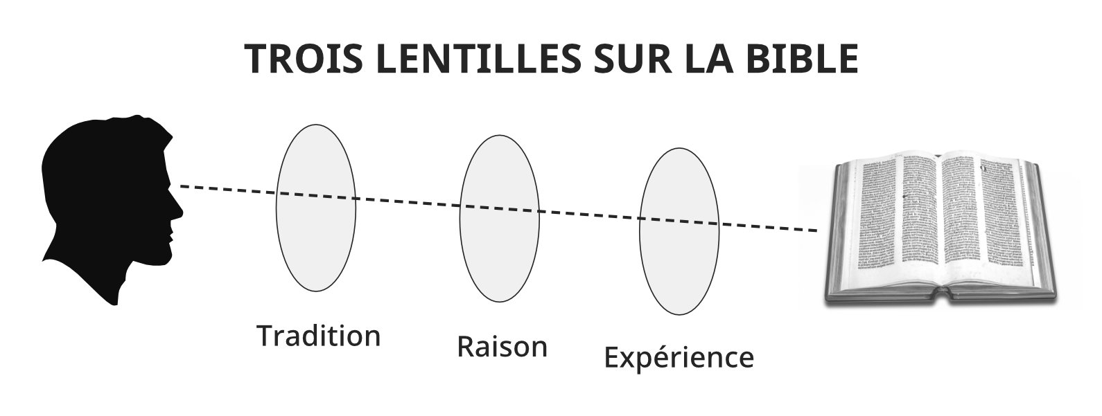 Chacune de ces lentilles est importante. Si nous nous basons uniquement sur la tradition, nous commettrons l'erreur catholique romaine consistant à considérer l'enseignement de l'église comme ayant la même autorité que l’Écriture. Si nous utilisons uniquement la raison, nous considérerons l'esprit comme l'autorité suprême. Si nous utilisons uniquement l'expérience, notre interprétation sera limitée et reposera sur les sentiments personnels, les points de vue et les opinions de personnes. Ces lentilles sont des moyens qui nous permettent de comprendre l’Écriture, mais elles ne devraient pas être utilisées d'une manière qui contredit l’autorité de l’Écriture.