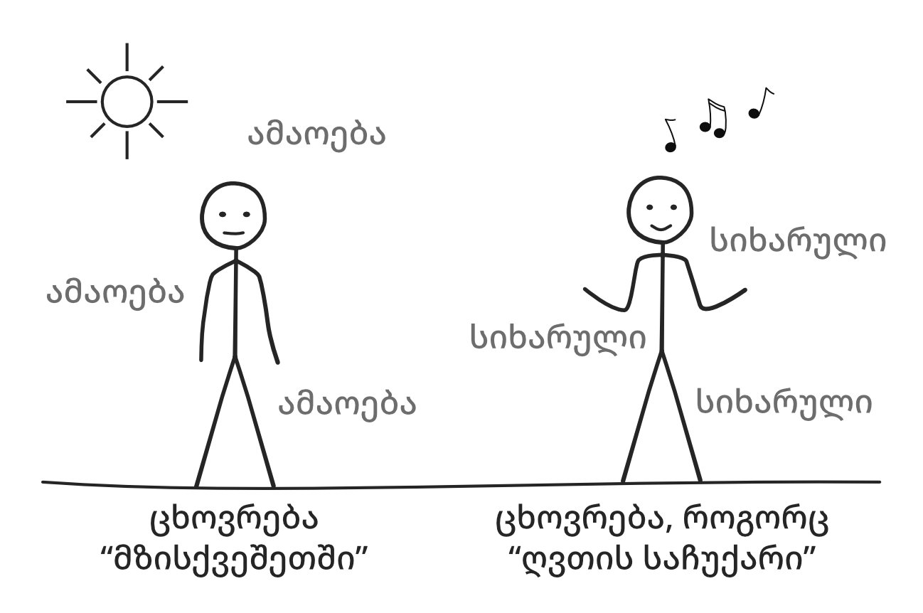 ცხოვრებისეული პერსპექტივების შეპირისპირება ეკლესიასტესში” (ეკლესიასტე 3:11). ღმერთმა ამცნო ადამიანს მარადისობისა და ჭეშმარიტი სიხარულის შესახებ. თუმცა, ჩვენ ვერასდროს ვიპოვით ამ სიხარულს საკუთარი ძალისხმევით. ჭეშმარიტი სიხარული გვეძლევა მხოლოდ ღმერთთან ურთიერთობაში, ღვთის მოშიშებაში.
