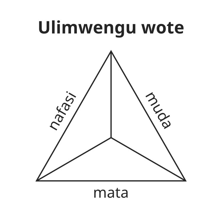 Ulimwengu ni moja ya mfano mzuri wa Utatu Mtakatifu. Ulimwengu wote kwa pamoja una vipengele vitatu tu muhimu: - nafasi, muda na mata. Kama utaondoa hapo kimoja katika hivi vitatu, hutakuwa na ulimwengu tena.
