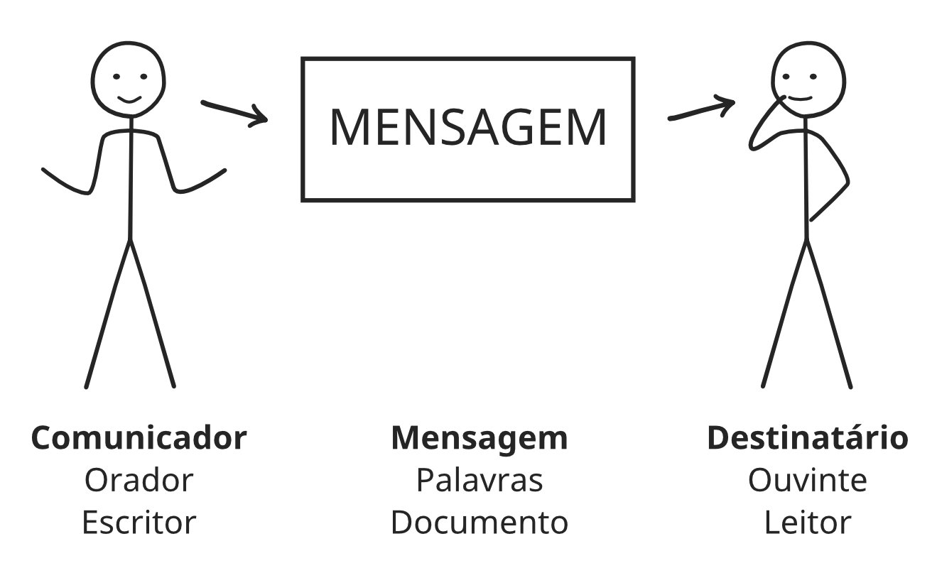 A comunicação envolve três componentes: o comunicador, o destinatário e a mensagem. A pessoa que está se comunicando dá uma mensagem que deve ser recebida por uma segunda pessoa.