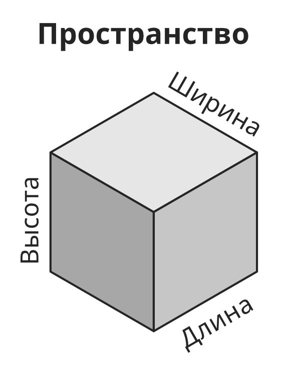 ПРОСТРАНСТВО состоит из длины, высоты и ширины — три в одном. Отсутствие любой из этих составляющих исключает существование пространства.