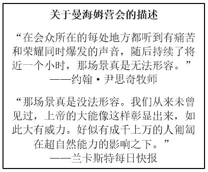 全国推动圣洁营会联合会随后又在美国的其他地方举行好多场营会。每场都有成千上万人参加。而且参加营会的人不止有美国人,还有来自加拿大、英国、印度、德国和其他几个欧洲国家的人。