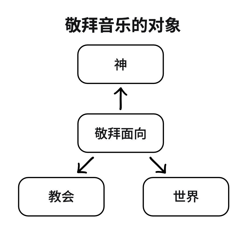 我们的敬拜音乐应该面向神并歌颂神;我们的敬拜音乐应该对教会说话;我们的敬拜音乐应该向世界传扬福音。