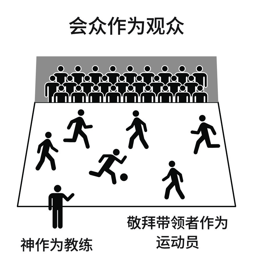 会众向神献上敬拜,聆听神的话语,并在敬拜中彼此交流。