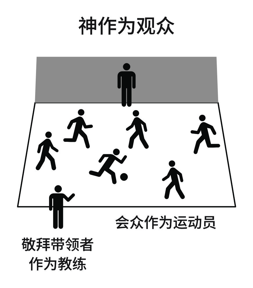 巴里·利施将此敬拜观点比喻成一场足球赛:[1]