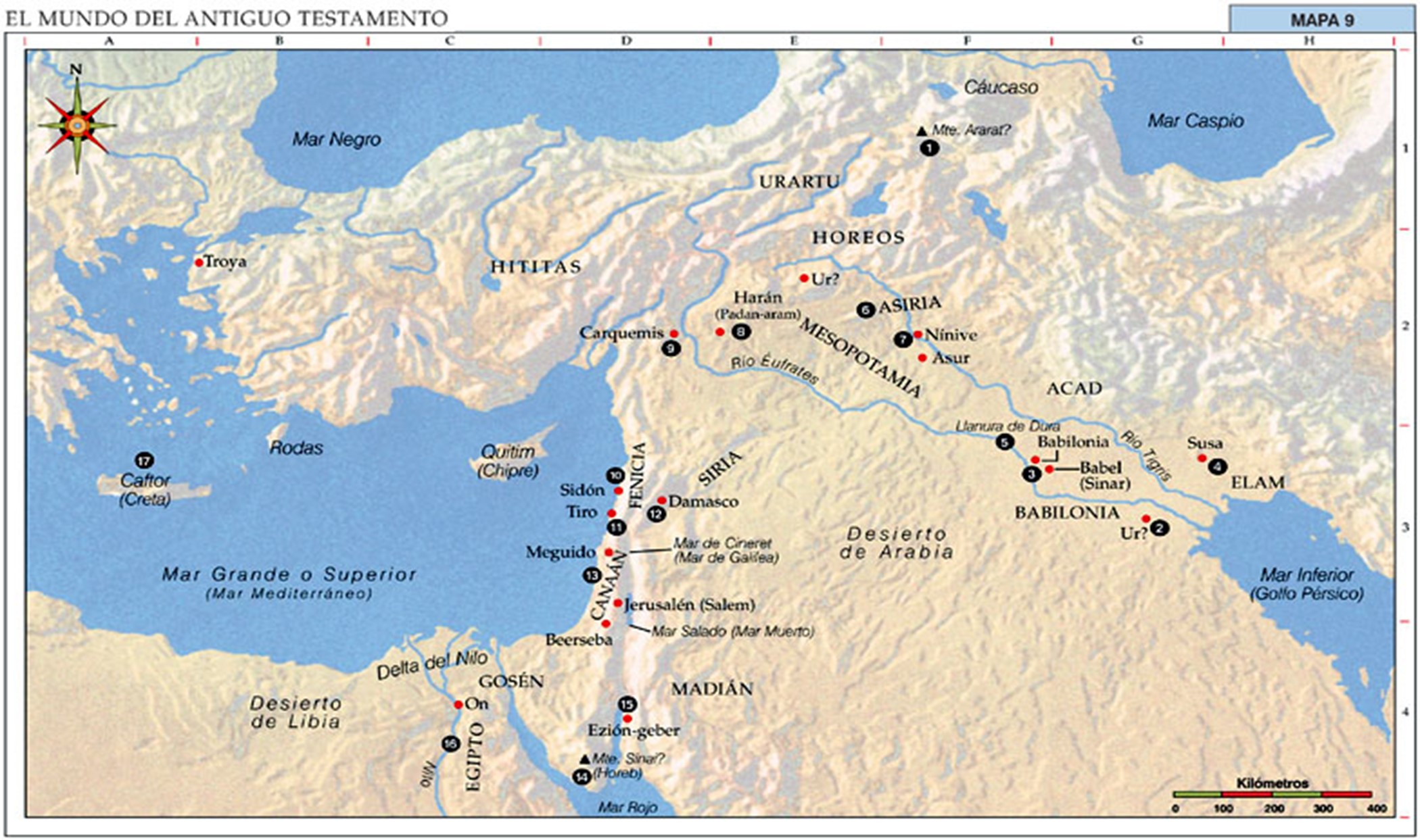 Parte de la dificultad de leer el Antiguo Testamento es la gran cantidad de lugares y fechas que menciona. Dos ilustraciones le darán un panorama general del mundo del Antiguo Testamento. Por favor téngalas como referencia al estudiar las próximas lecciones de este curso.