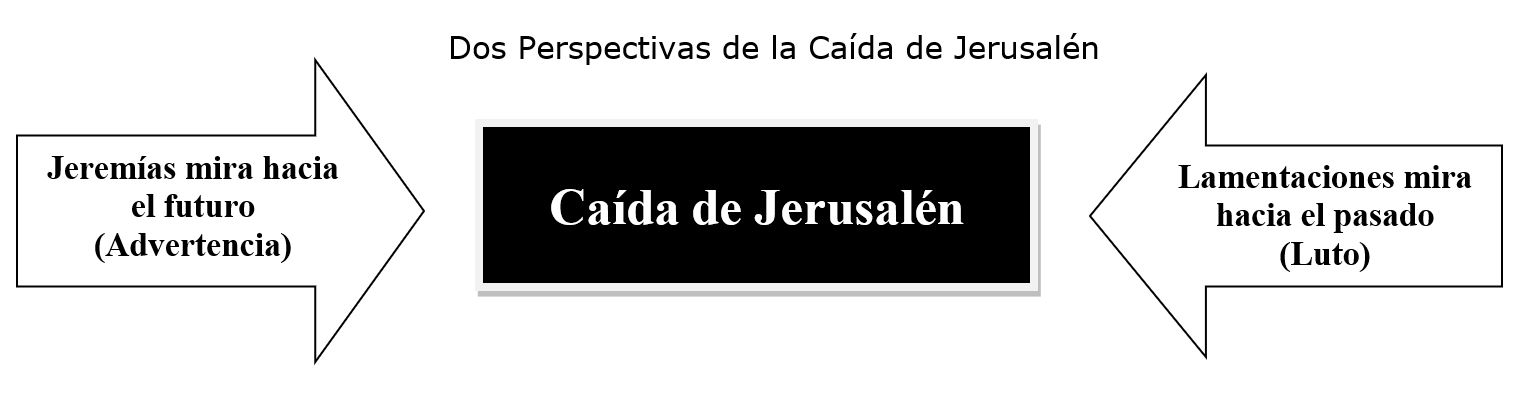 Estos poemas dan cuenta del gran dolor del autor por la caída de Jerusalén. Dejan claro que el sufrimiento de Jerusalén fue el resultado del pecado de Judá, no una falla de Dios. El libro de Jeremías mira hacia adelante, a la futura caída de Jerusalén; Lamentaciones mira hacia atrás a la caída de la ciudad.