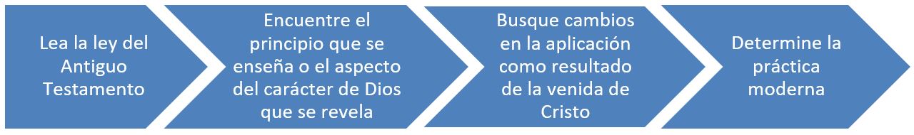 Con base en este enfoque, nos preguntamos: “¿Qué revela esta ley acerca del carácter santo de Dios y acerca de lo que él demanda de un pueblo santo?” Entonces leemos la ley desde la perspectiva de la venida de Cristo y la aplicamos a nuestras circunstancias actuales.