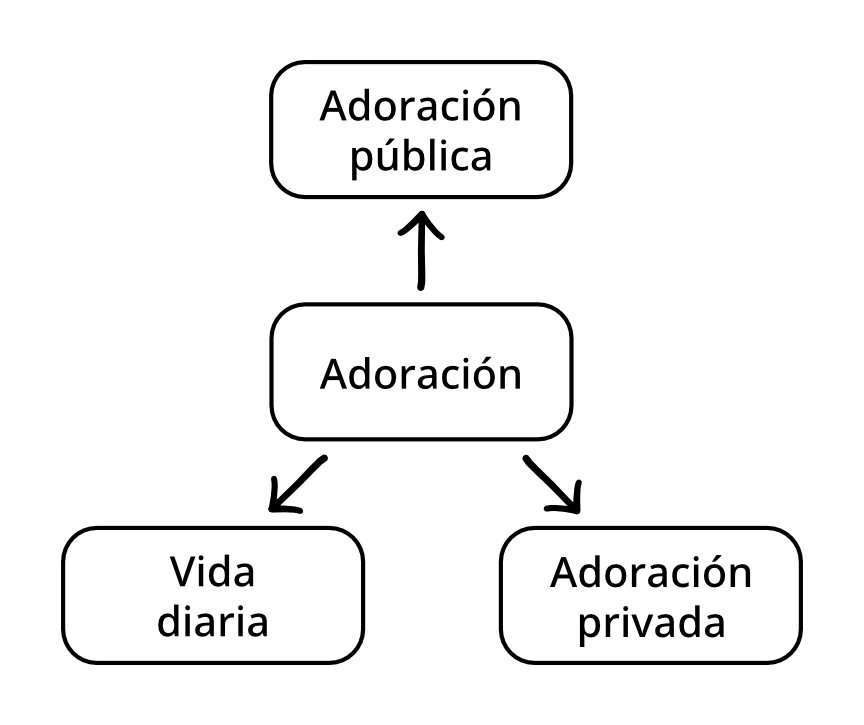 [2]La adoración colectiva se ordena en escrituras como Hebreos 10:25. La adoración colectiva se asume en escrituras como Hechos 2:46-47.