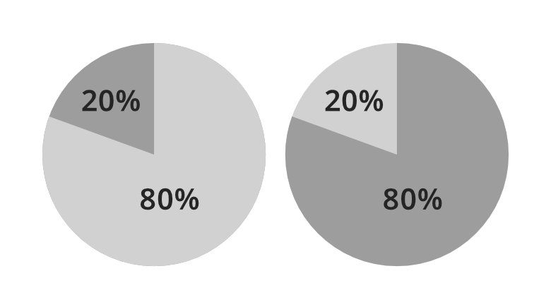 ► Utiliza una ilustración visual para asegurarte de que este concepto se entienda. El líder de la clase debe dibujar dos cuadros grandes. Divide cada cuadro en un 20% y un 80%. Ahora ilustra señalando de un cuadro al otro. El 80% de las personas (señala la sección grande del primer cuadro) en una organización hacen solo el 20% del trabajo (señala la sección pequeña del segundo cuadro). El 20% de las personas (señala la sección pequeña del primer cuadro) hacen el 80% del trabajo (señala la sección grande del segundo cuadro).
