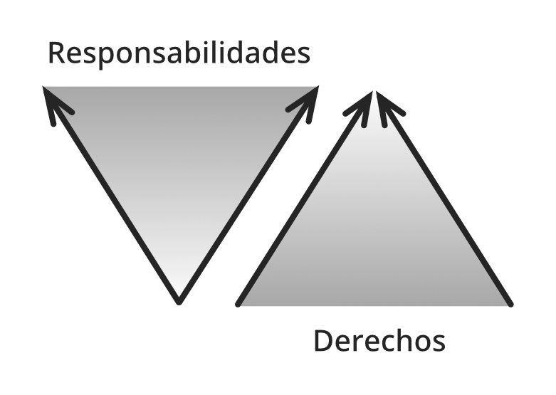 A medida que aumentan las responsabilidades de una persona, puede tomar decisiones más importantes en la organización; pero renuncia a privilegios personales. Este proceso se ha ilustrado con este diagrama. En la parte inferior del diagrama, una persona tiene una pequeña cantidad de responsabilidad pero muchos derechos, porque puede decidir cuánto comprometerse. A medida que aumentan sus responsabilidades, disminuyen sus derechos personales.
