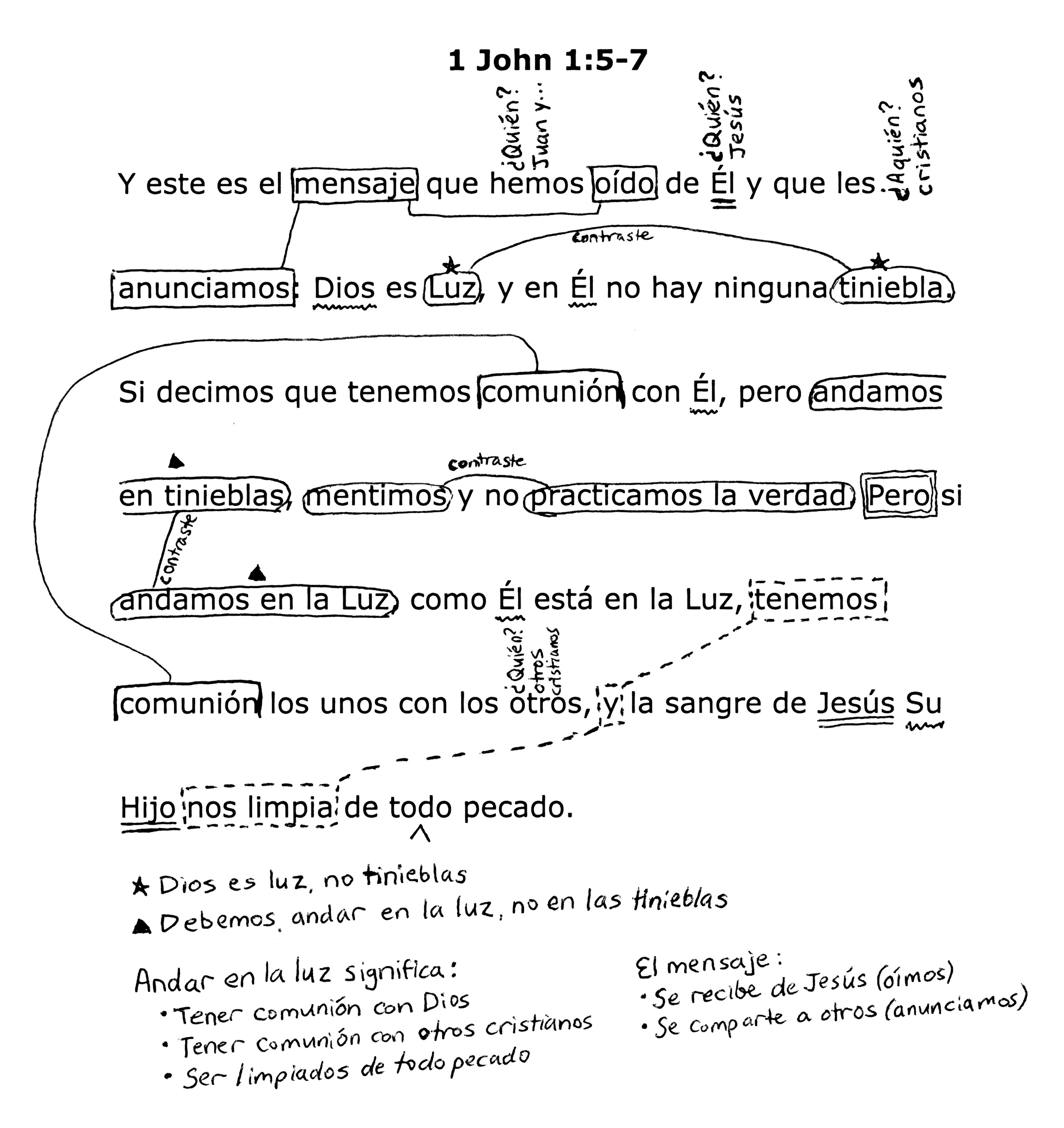 En 1 Juan 1:5-7, Juan contrasta las tinieblas y la luz de dos maneras: