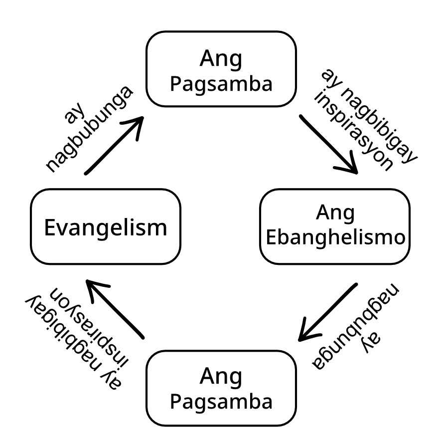 Matatagpuan natin sa aklat ng mga Gawa ang daloy ng ganitong proseso. Matapos na mangaral si Pablo sa mga taga-Efeso, ang mga tao ay tumalikod mula kay Diana at mula sa pagsamba sa mga diyus-diyusang gawa ng kamay. Sila’y lumapit sa tunay na Diyos (Gawa 19:26-27). Kapag ipinapangaral natin si Cristo, may mga bagong mananampalataya na naaakay sa Kaharian ng Diyos; sila’y nagiging mga bagong mananambahan. Ang ebanghelismo ay lumilikha ng mga bagong mananambahan.