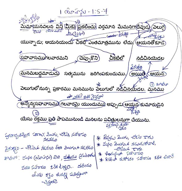 మనమును, చీకటిలో కాకుండా వెలుగులో నడిచినయెడల, మనము అన్యోన్యసహవాసము గలవారమై యుందుము.