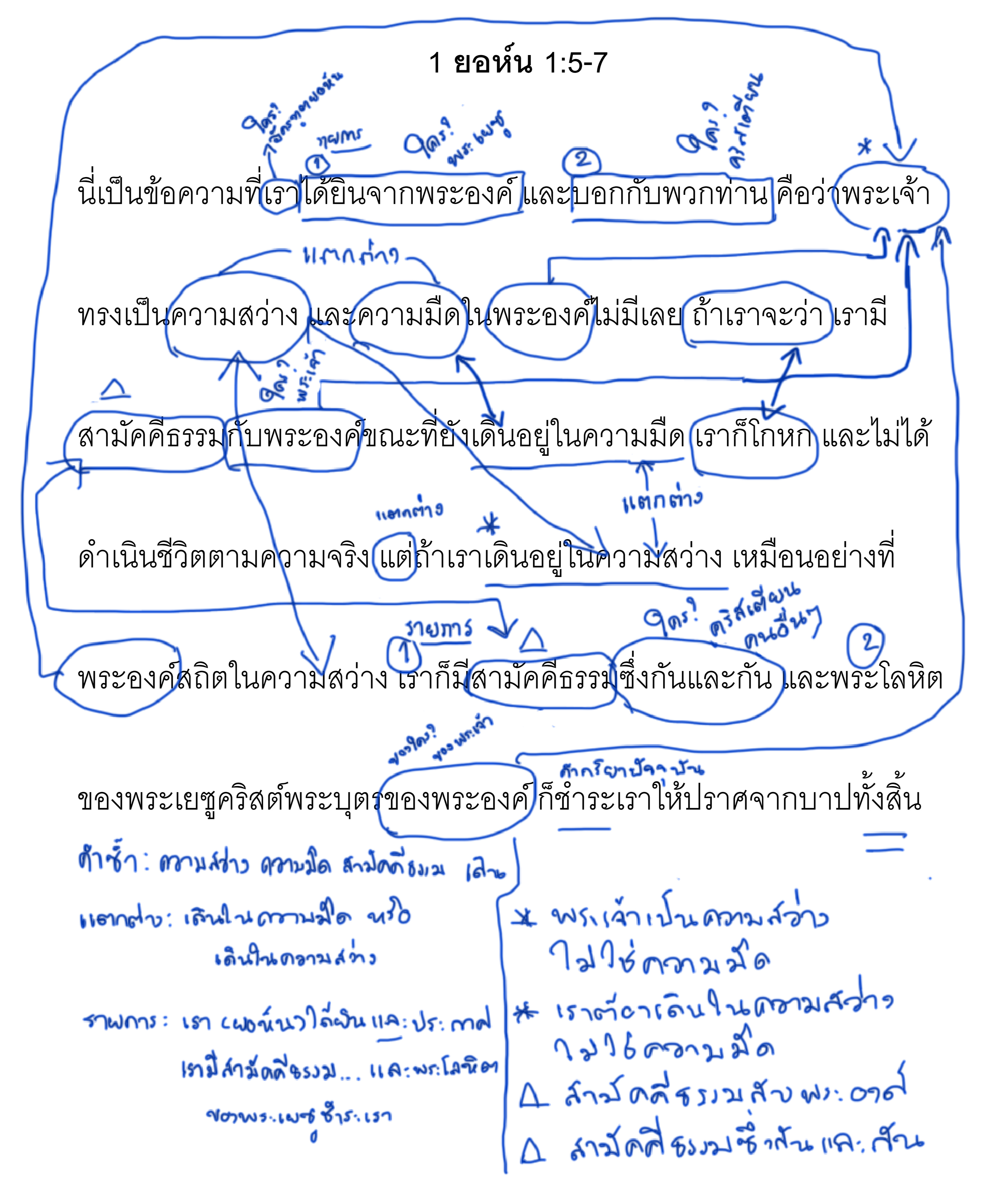 ใน 1 ยอห์น 1:5-7 ยอห์นเปรียบเทียบความแตกต่างของความมืดกับความสว่างในสองลักษณะดังนี้