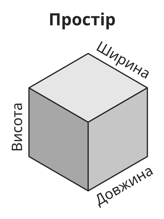 Простір складається з довжини, висоти і ширини — три в одному. Відсутність будь-якої з цих складових виключає існування простору.