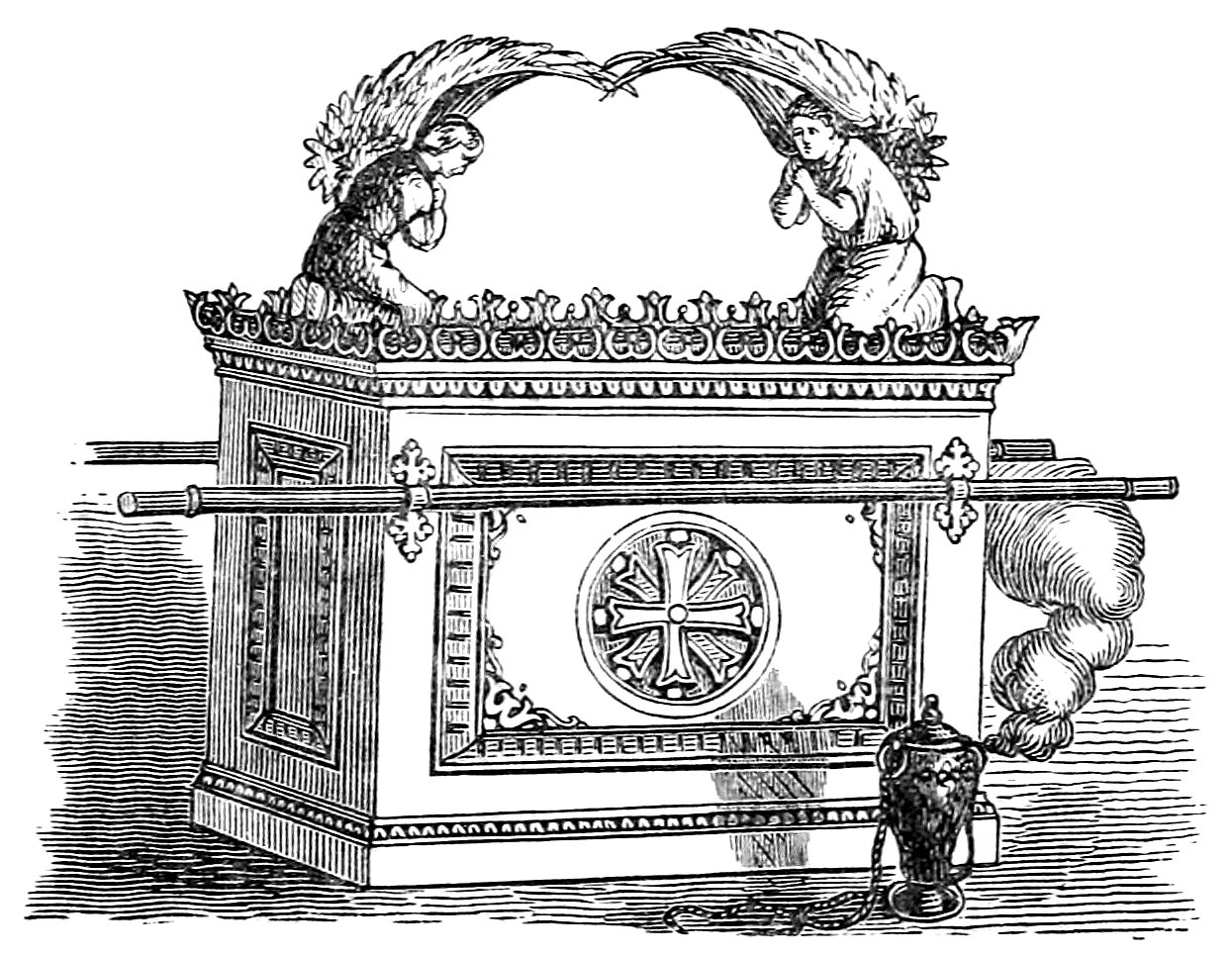 Два Херувими чеканної роботи були поміщені з двох боків ковчега[2]; між ними знаходилося місце милості. Біблія неодноразово називає Бога Тим, Хто сидить на Херувимах [3]. У такий спосіб Писання представляє нам Господа як Бога Ізраїлевого, Котрому поклонялися в храмі, а також показує, що приступати до Нього можна лише зазначеними Ним же способами.
